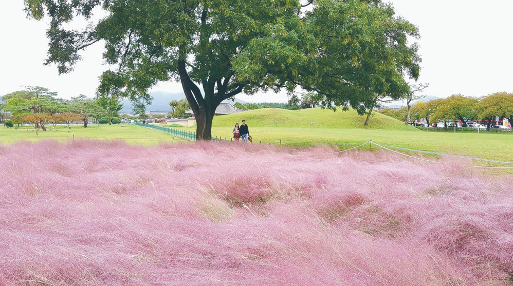 첨성대 인근은 핑크뮬리 군락지입니다. 가을여행이라고 하면 단풍이 떠오르겠지만, 경주에서는 핑크뮬리가 주목을 받고 있습니다. 핑크뮬리에서 인생사진 한번 찍어보시기 바랍니다.