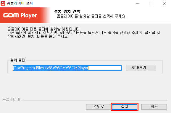 Step5. 설치위치선택을 하고 [설치] 버튼을 클릭하여 설치를 진행합니다.