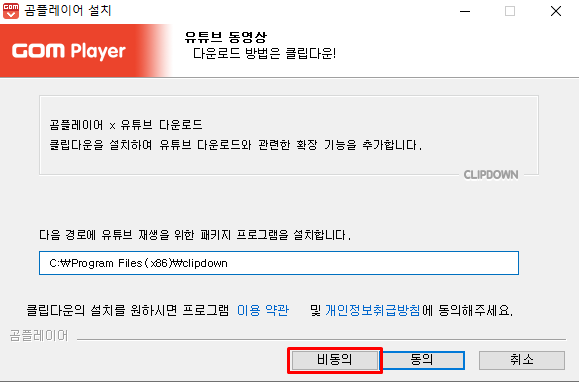 Step4. 추가 프로그램을 설치하지 않으려면 [비동의]를 클릭합니다.