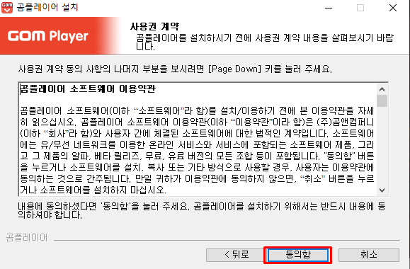 Step2. 사용권 계약에 [동의함] 버튼을 클릭합니다.