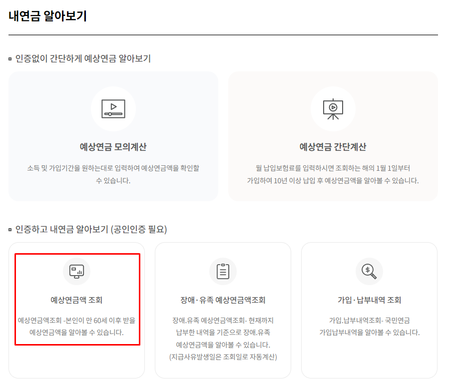국민연금 예상수령액 조회