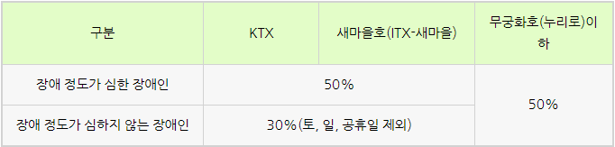 코레일 멤버십 회원 중 기초생활 수급자 대상 할인이 가능합니다.