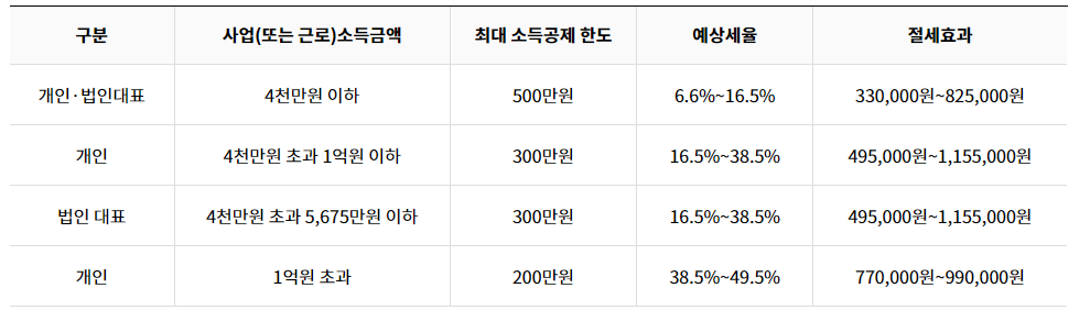 납입부금에 대해 연간 최대 500만원 소득공제 혜택을 부여하므로 세 부담이 높은 사업자의 절세전략으로 탁월합니다.