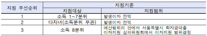 서울시 대학생 학자금대출 지원대상