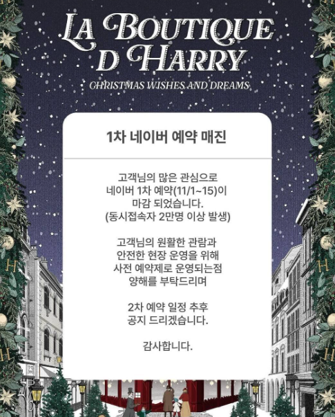 올해부터는 1차부터 3차까지 사전예약을 해야 크리스마스 마을에 방문가능합니다.
