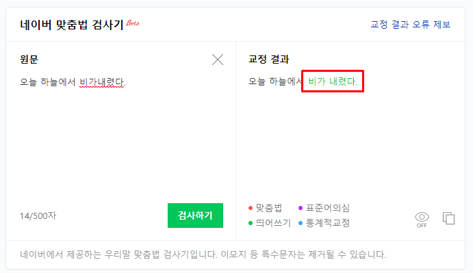 Step2. 맞춤법 결과 오타확인이 가능하여 정정할 수 있습니다.