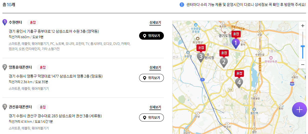 3. 삼성전자 서비스센터 찾기 및 영업시간