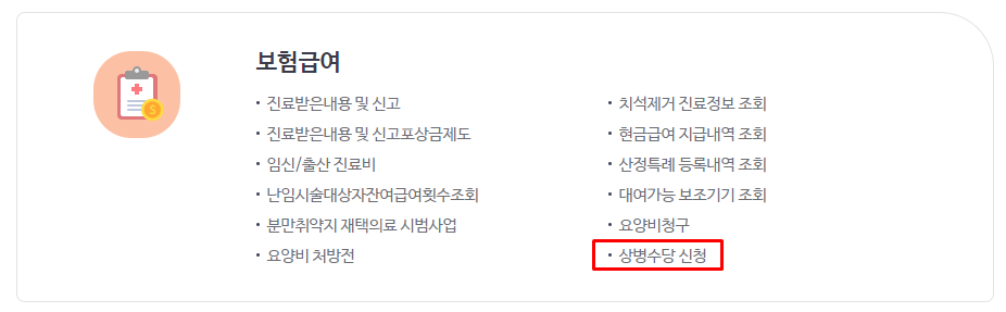 상병수당 신청하기 위해서는 국민건강보험 사이트에 접속해서 아래와 같이 신청하시기 바랍니다.