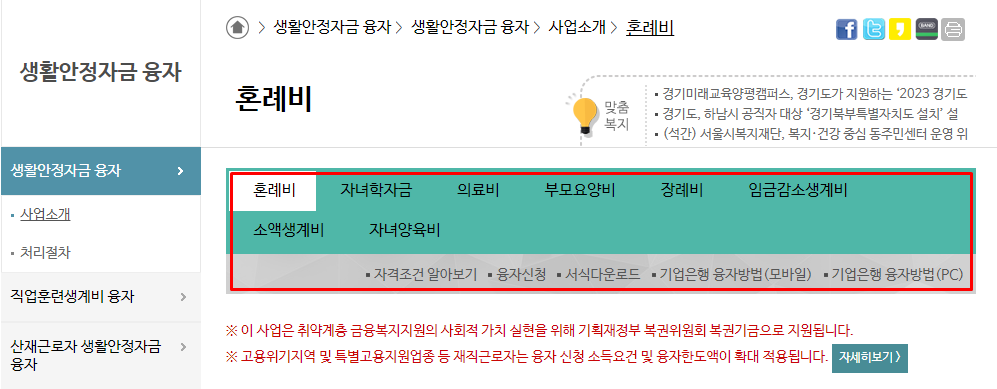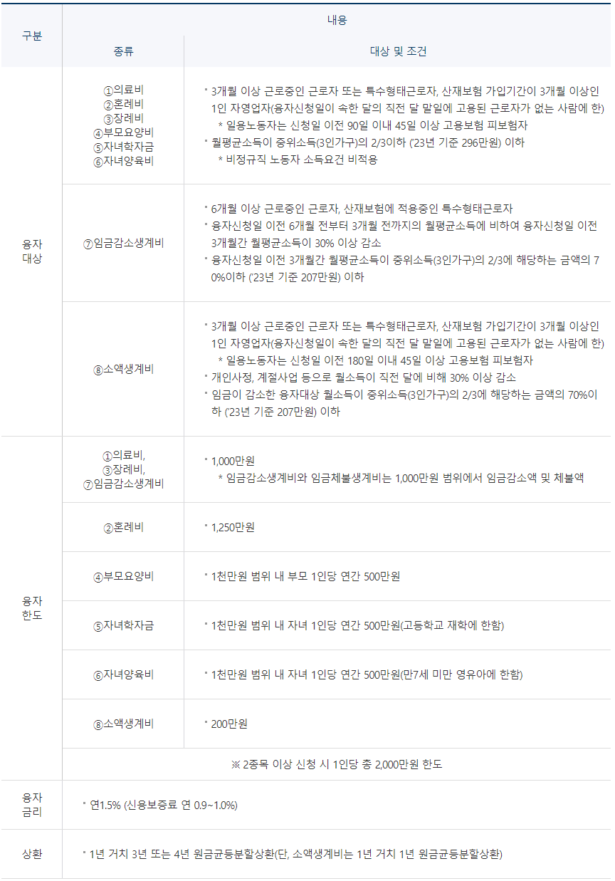 생활안정자금 융자 종류