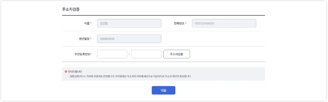 (알뜰교통카드 사업에 참여하는 지자체 주민만 가입할 수 있습니다 주소지검증이 안되는 경우 고객센터 031-427-4415로 문의해주세요)