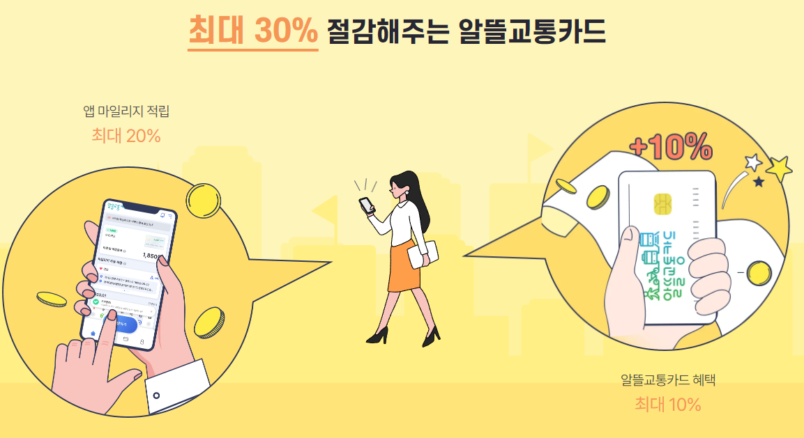 버스나 지하철로 출퇴근 한다면 집중하시기 바랍니다. 오늘 소개할 짠테크는 알뜰교통카드예요. 대표적 고정 지출인 교통비를 기본 10~20%, 카드사 추가 할인까지 받으면 30% 줄일 수 있어요.