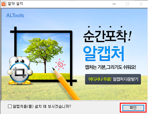 Step2. [빠른 설치] 버튼을 클릭해서 설치를 진행하고 다른 프로그램(알캡쳐 등) 설치하지 않으려면 체크해지 한 후 [확인] 버튼을 클릭합니다.