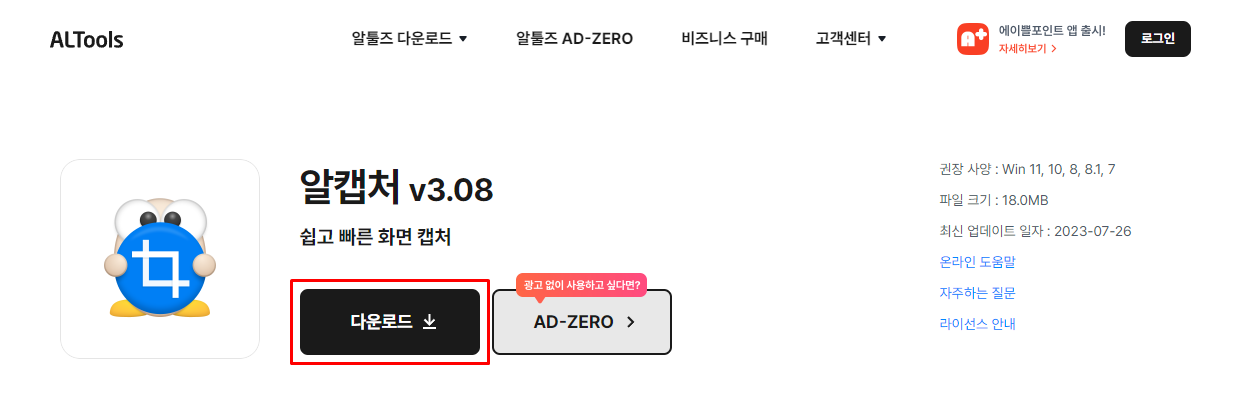 알캡쳐 다운받으려면 알툴스 홈페이지에서 다운받을 수 있습니다.