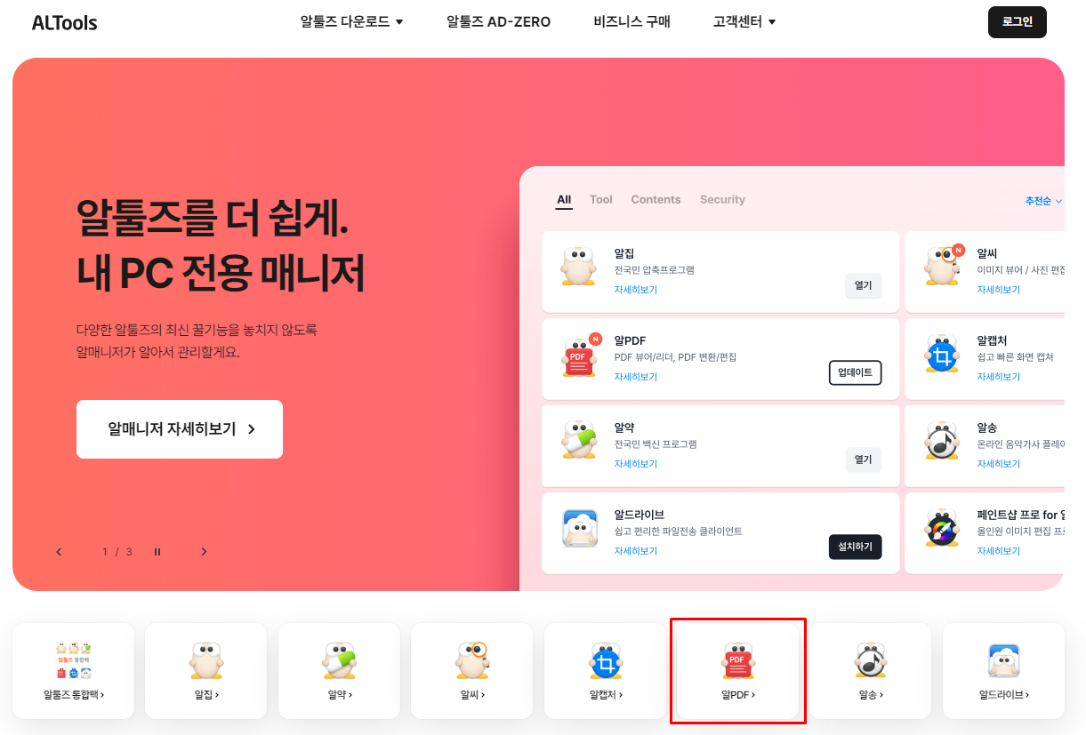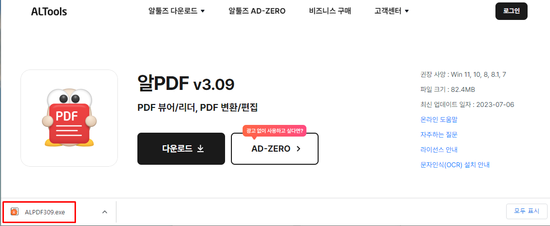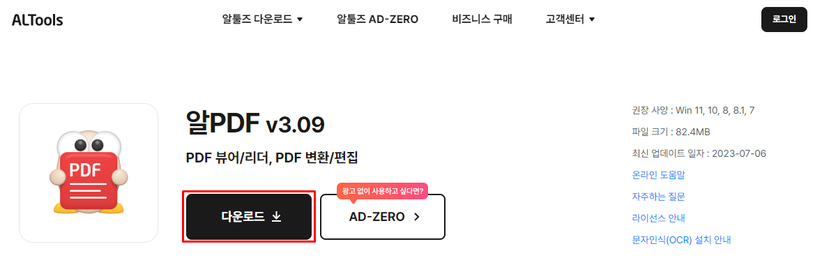 Step2. 알PDF 페이지에서 [다운로드]를 선택합니다.