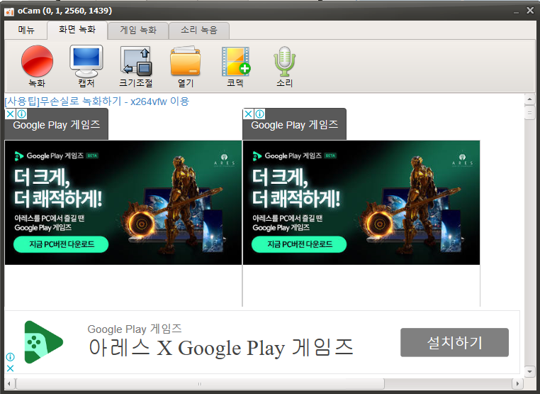 Step2 설치가 완료되어 아래처럼 실행 후 녹화나 캡처를 할 수 있습니다.