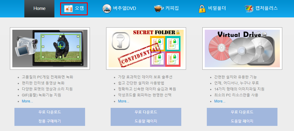 오캠 다운받으려면 오캠 공식 홈페이지에서 다운받을 수 있습니다.
