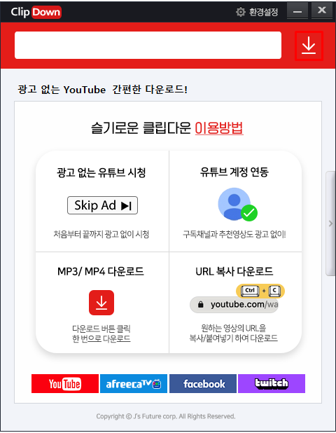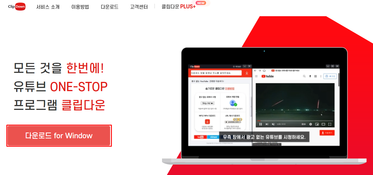Step2. [다운로드 for Window]버튼을 통해 클립다운 프로그램을 다운받고 설치합니다.