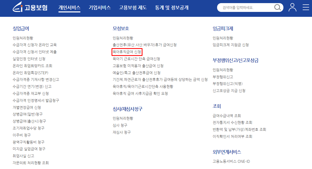 육아휴직 지원금 신청하려면 고용보험 홈페이지에서 신청가능합니다.