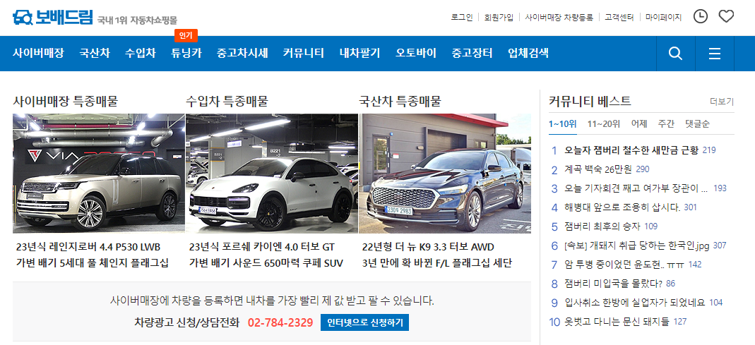 보배드림은 국내 최대 자동차 커뮤니티입니다. 초기에는 중고차 매매사이트이었지만, 현재는 커뮤니티가 더 유명합니다.