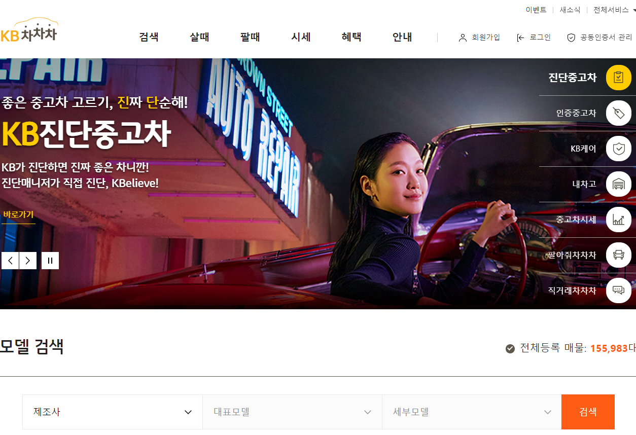KB차차차에도 중고차 매물이 15만 5천대 정도로 보유하고 있어서 시세파악이 아주 좋습니다. KB차차차에는 딜러가 없기 때문에 KB차차차 소속딜러라고 한다면 피하시기 바랍니다.