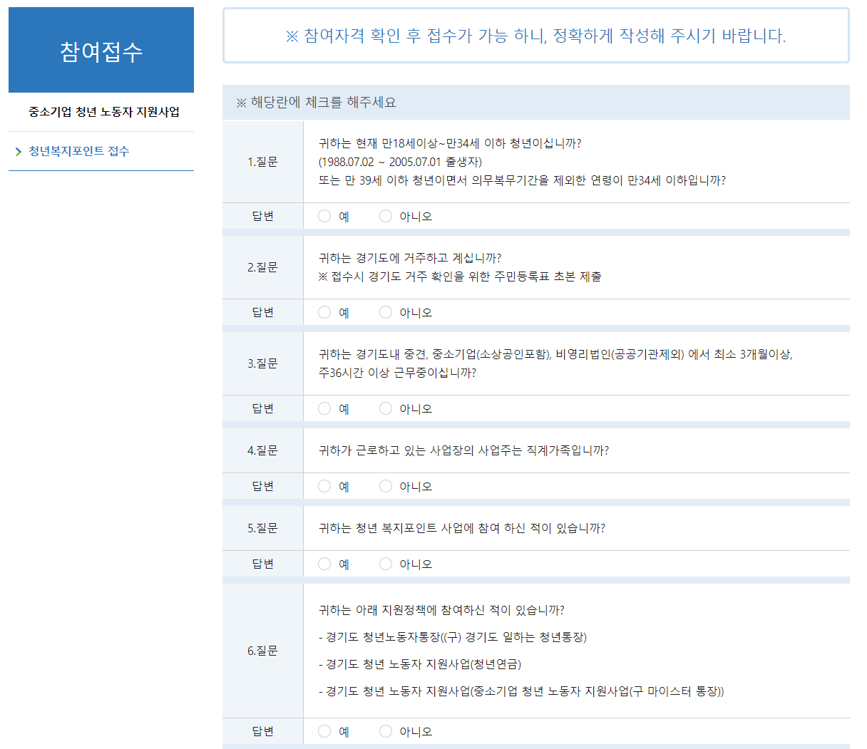 아래 질문에 대한 답변한 후 [신청완료]를 클릭하면 됩니다.