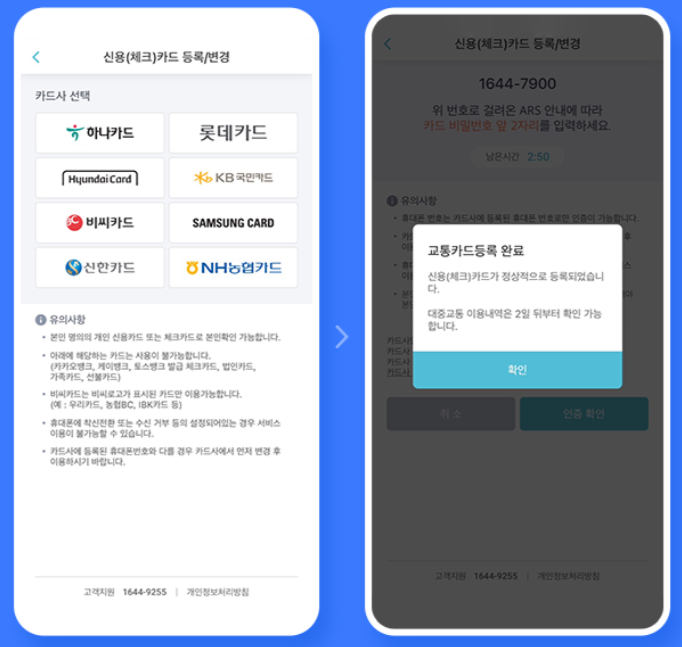 Step4 교통카드를 선택하면 등록이 완료됩니다.