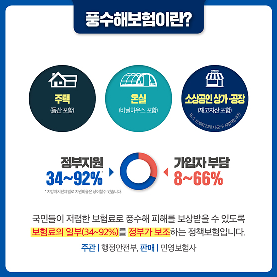 - 정부가 풍수해보험료의 70~100%를 지원합니다.