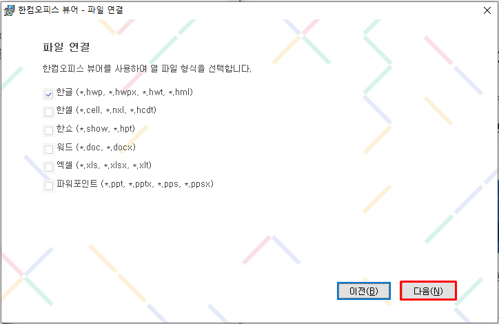 Step2. 한컴오피스 뷰어 페이지가 뜹니다. [다음]을 클릭합니다.