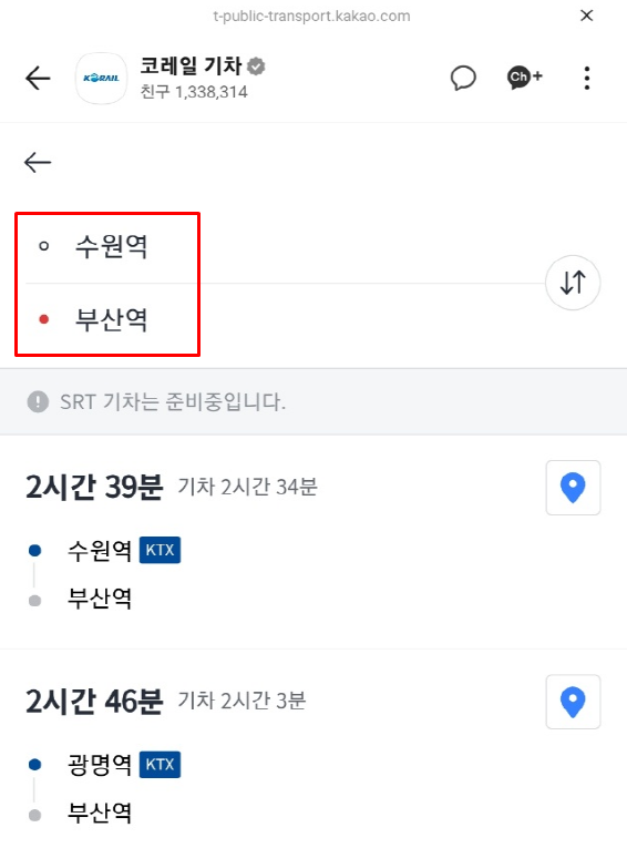 카카오 앱에서도 간단히 기차표 예매할 수 있습니다.