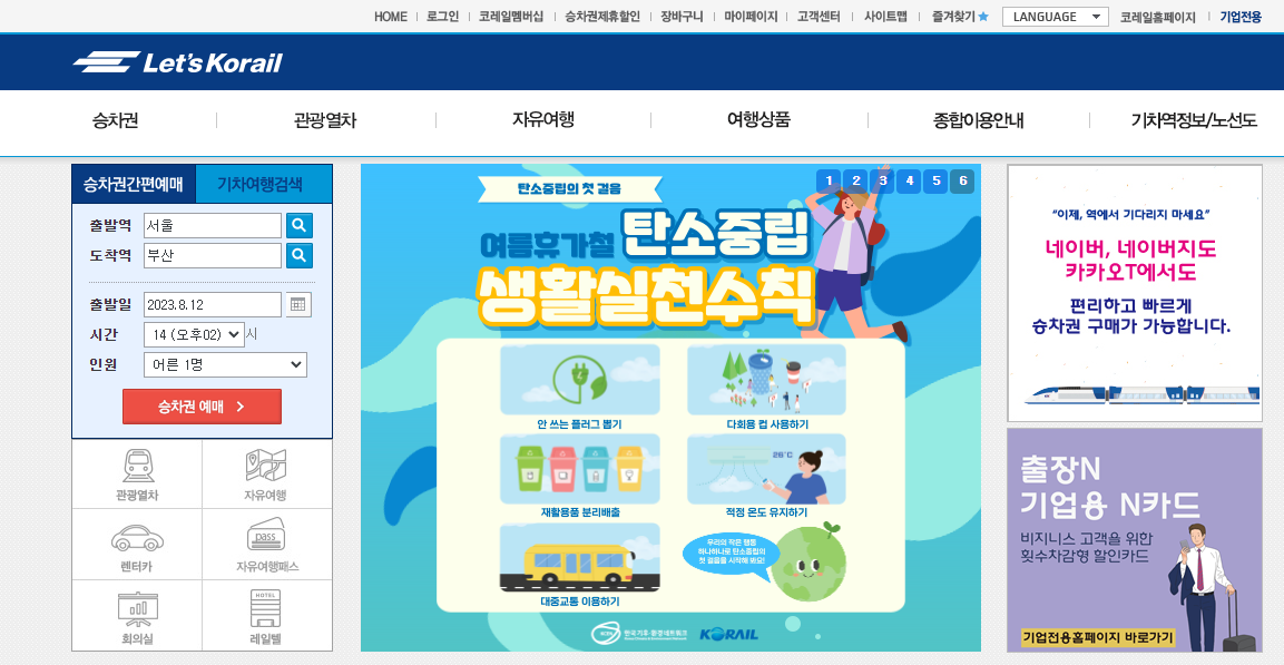 1) 코레일 홈페이지에서 예매하기