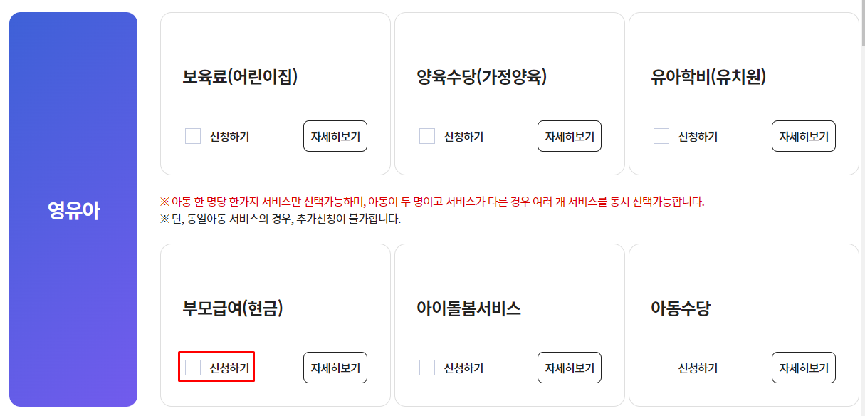 📌 기존 영아수당 지급받을 시 별도 신청필요없음.