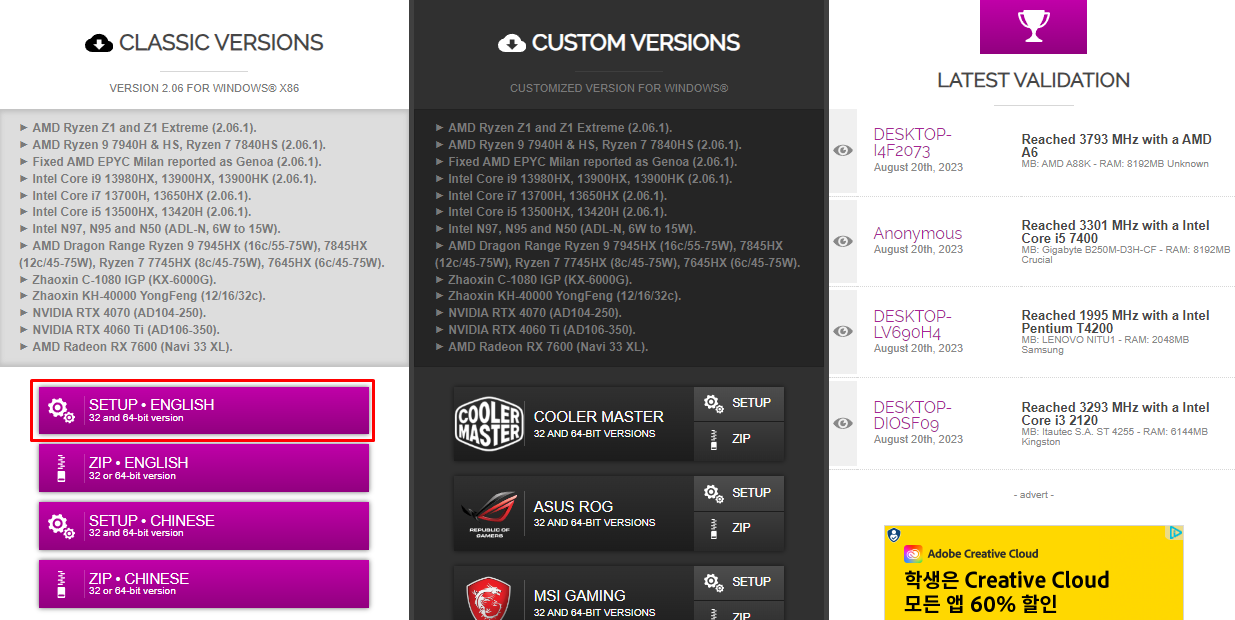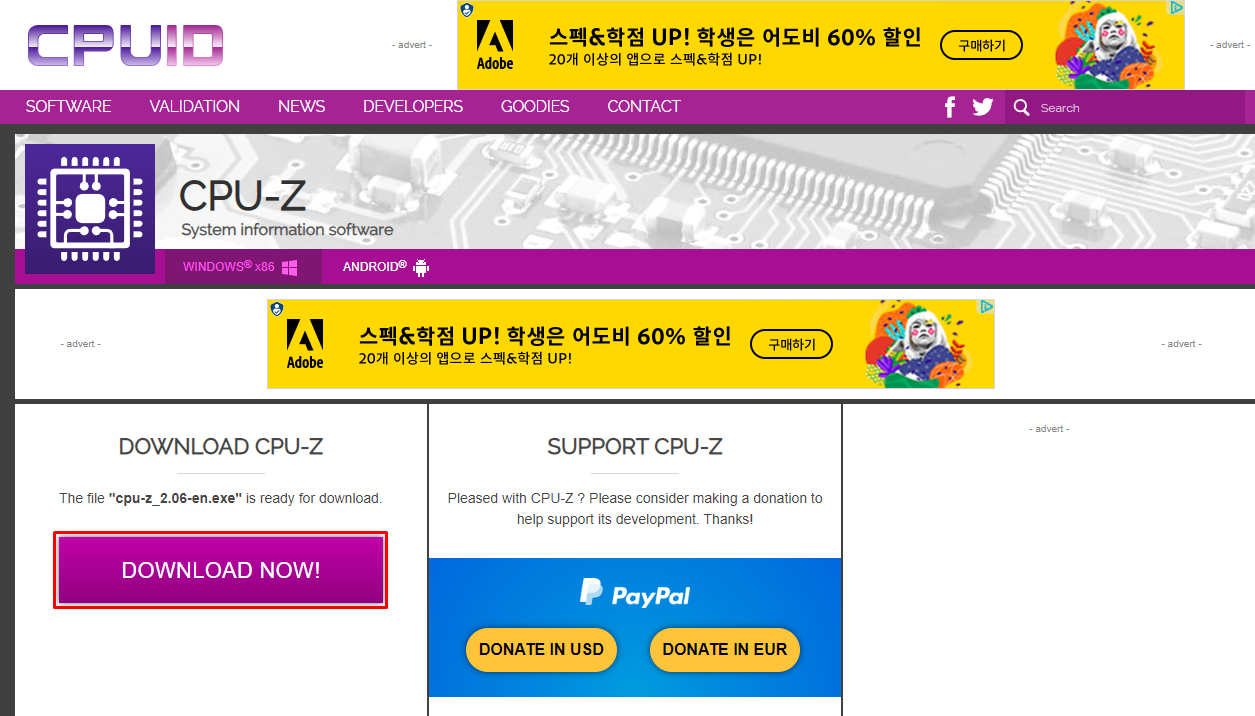 영문기본버전은 CPU-Z 공식홈페이지에서 다운받을 수 있습니다.