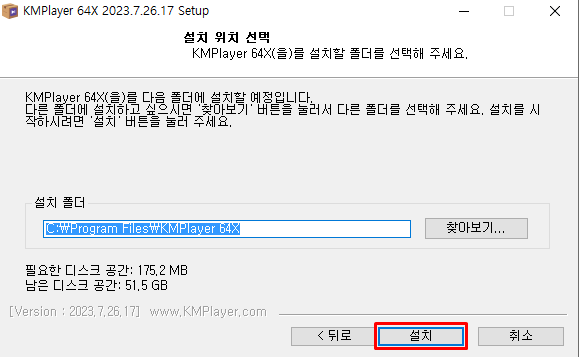 Step4. 설치위치 선택에서 [설치] 을 클릭합니다. 설치가 완료되면 [마침] 을 클릭해서 프로그램을 실행시킵니다.