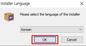 Step1. 설치파일을 실행하면 설치팝업창에 언어선택에서 Korean으로 하고 [OK] 버튼을 클릭합니다.