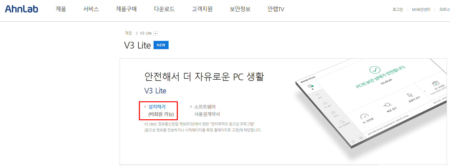 2. V3 무료백신 설치방법